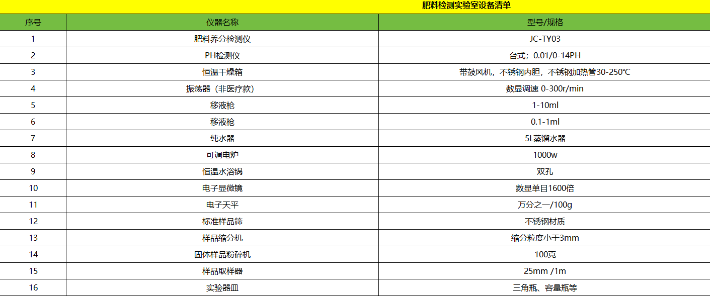 测土配方施肥实验室仪器清单