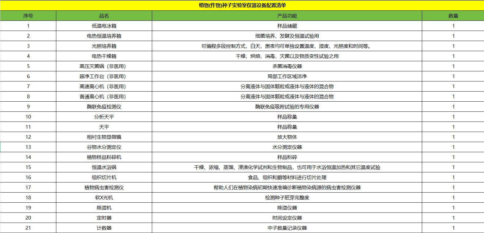 植物种子实验室仪器设备清单我们已为1350+科研机构与质检单位提供合规设备方案。请留下电话/微信,我们承诺:一.2分钟内,通过微信您发送专属设备清单与精准报价;二.前5名咨询,额外赠送《实验室设备选型避坑指南》电子书;三.0骚扰,专业销售仅提供资料/报价