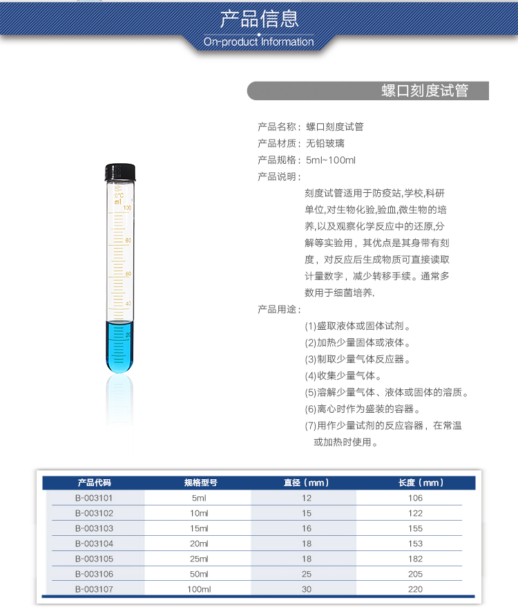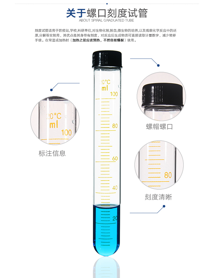蜀牛 螺口试管 玻璃罗口试管 耐高温刻度试管 具帽带盖子玻璃管 5ml 10ml 15ml 20ml 25ml 50ml 100ml