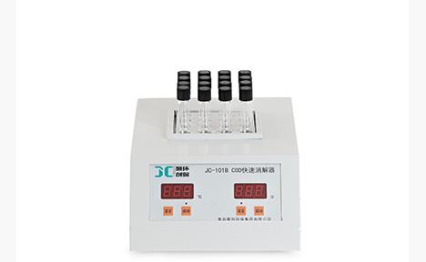 JC-101B型COD快速消解仪是一种快速测定化学耗氧量的加热装置。可进行COD、总磷、总氮等样品消解预处理。至2014年起升级配备了标准哈希同级可密封消解管。为了保证使用安全,便于客户实验过程中观察样品,升级配置透明消解防护盖。防止液体喷溅对人体造成伤害。
