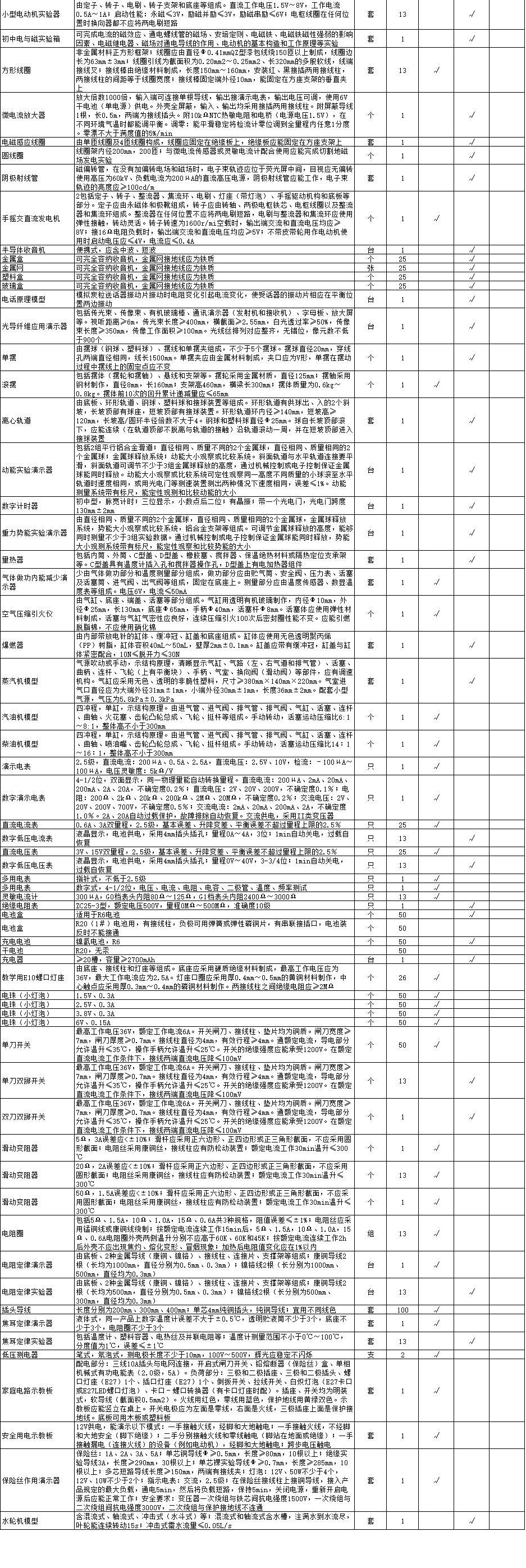 初中物理教学仪器