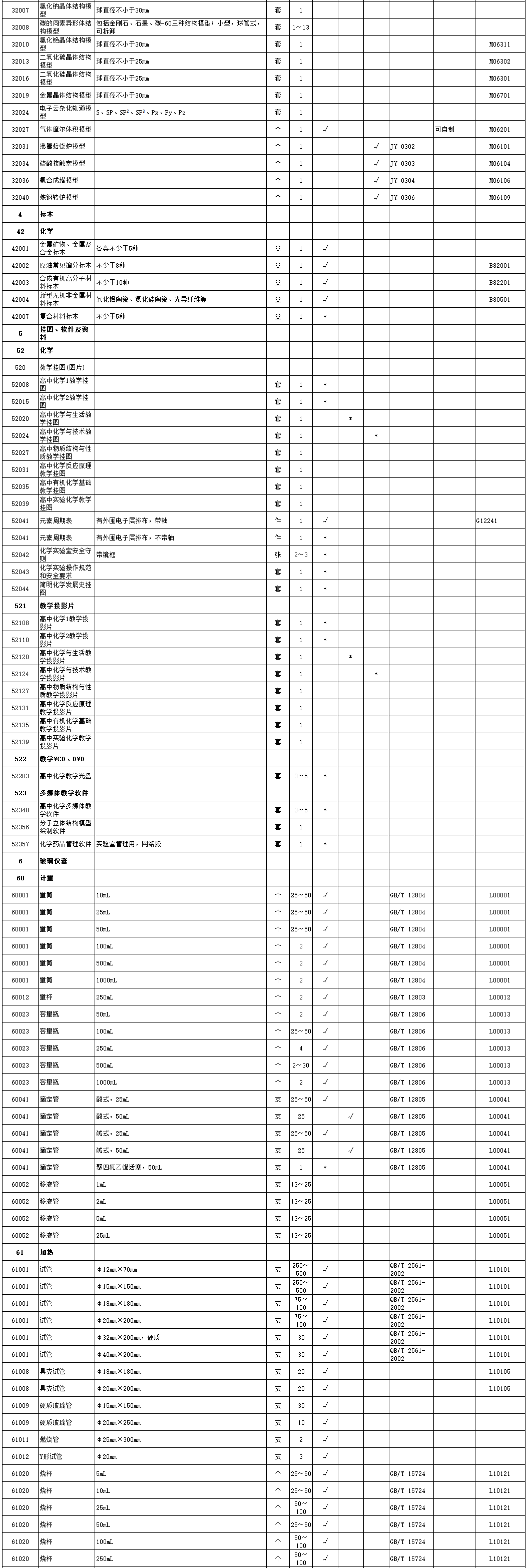 高中化学教学仪器