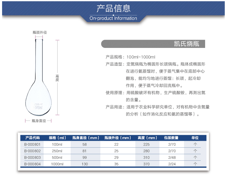 定氮烧瓶 玻璃凯氏烧瓶 实验室高硼硅耐热长颈蒸馏烧瓶100-1000ml