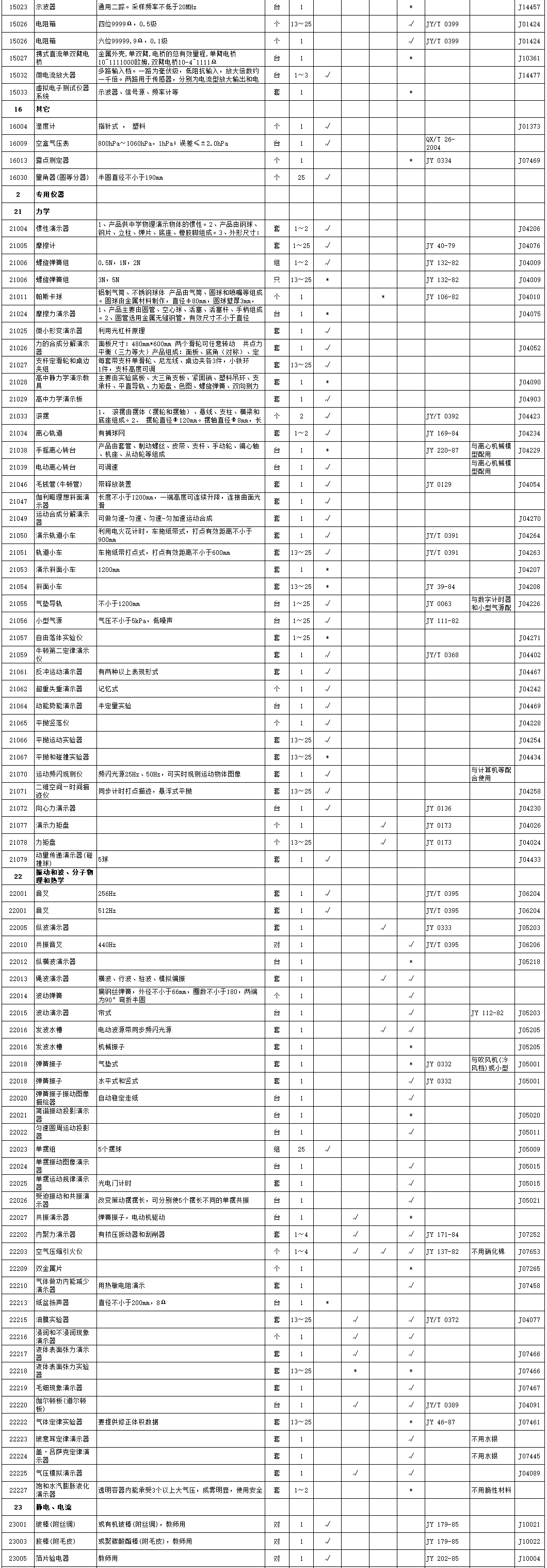 初中物理教学仪器