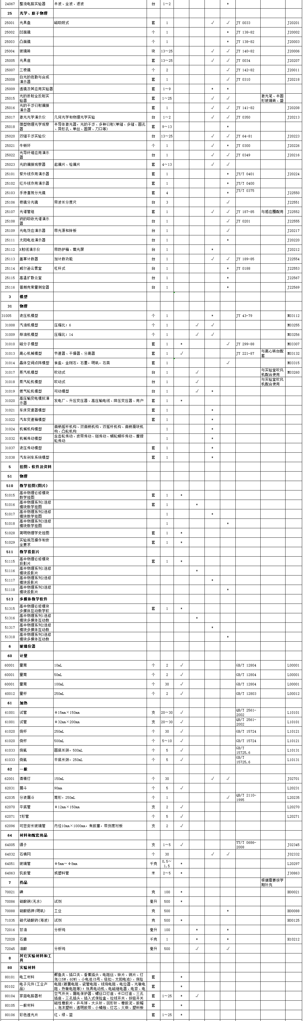 高中化学教学仪器