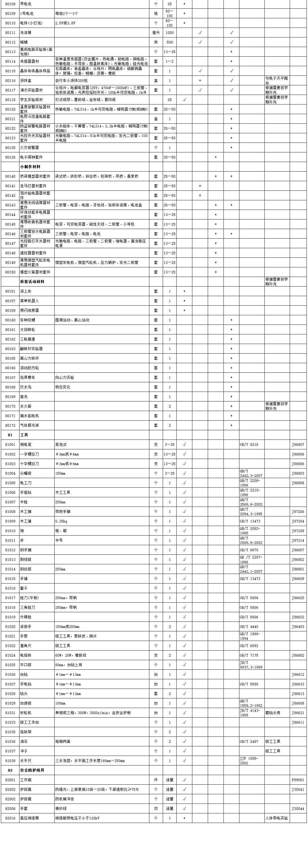 初中劳技配套器材