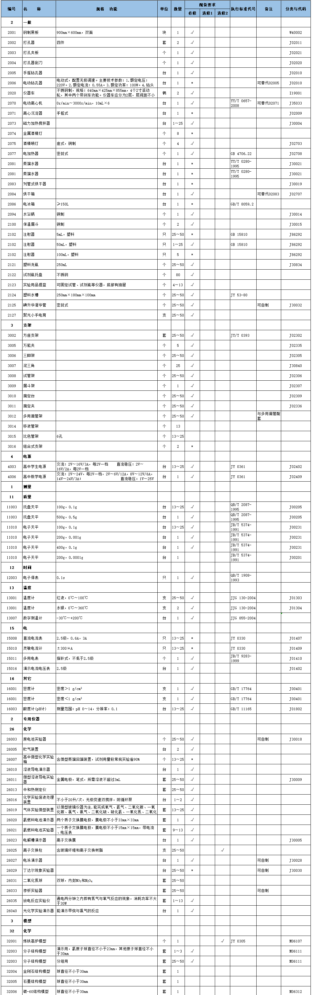 初中化学教学仪器