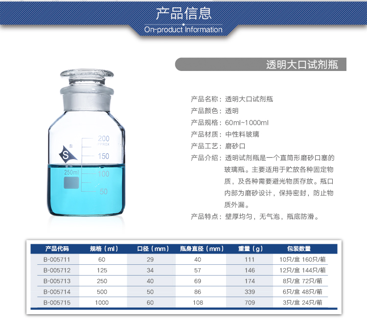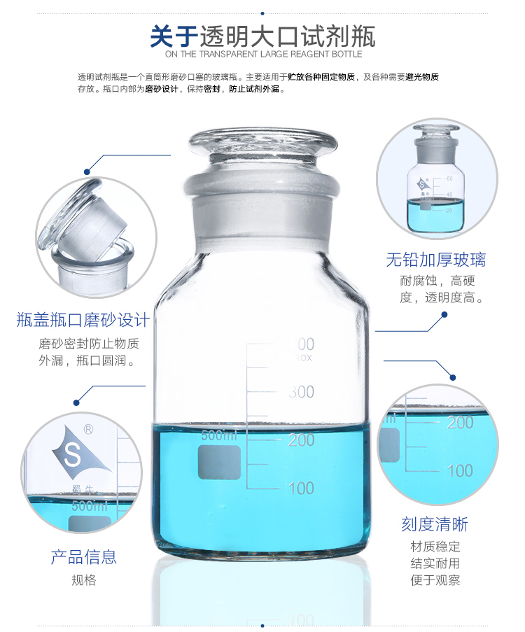 蜀牛 中性料白大口透明广口瓶磨口瓶磨口试剂瓶刻度60ml-1000ml